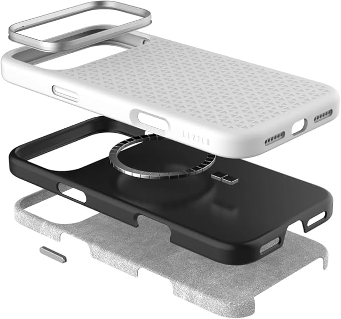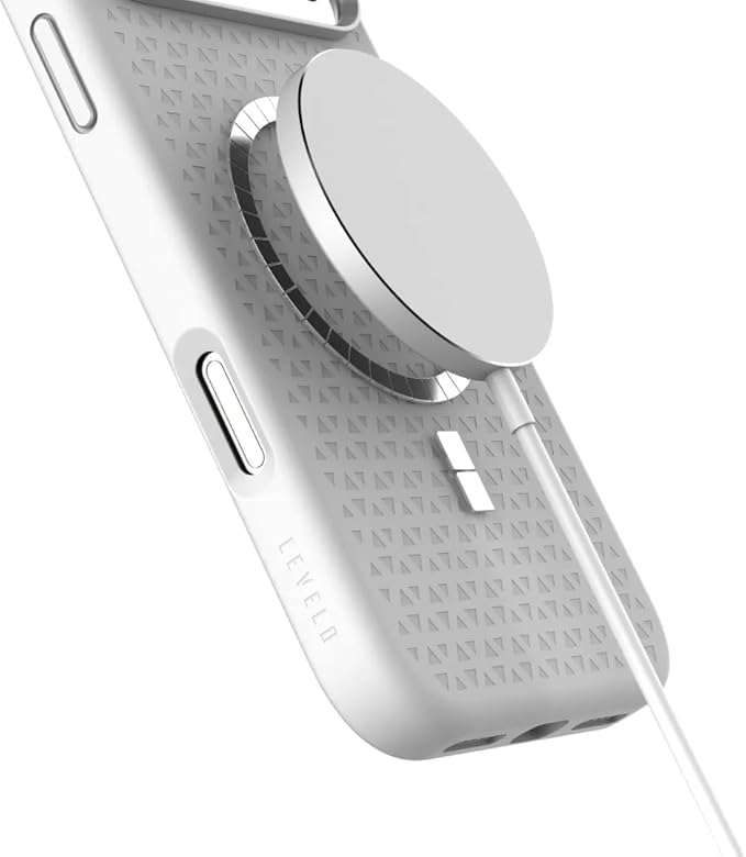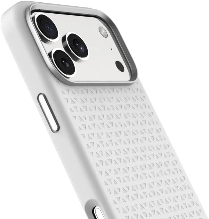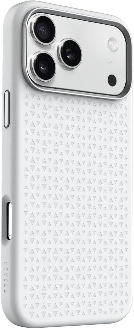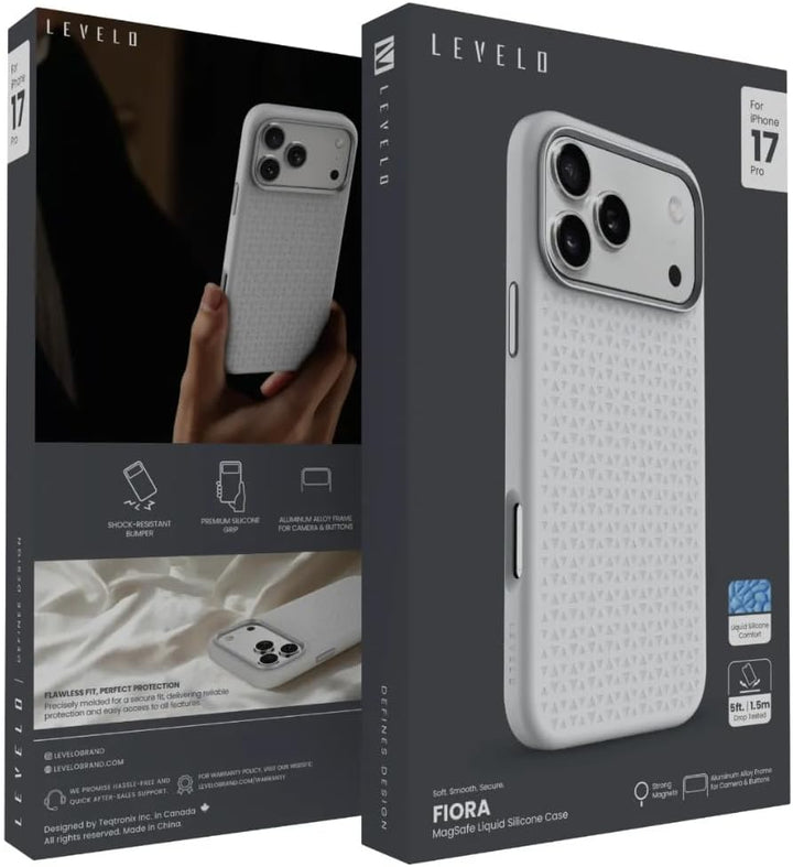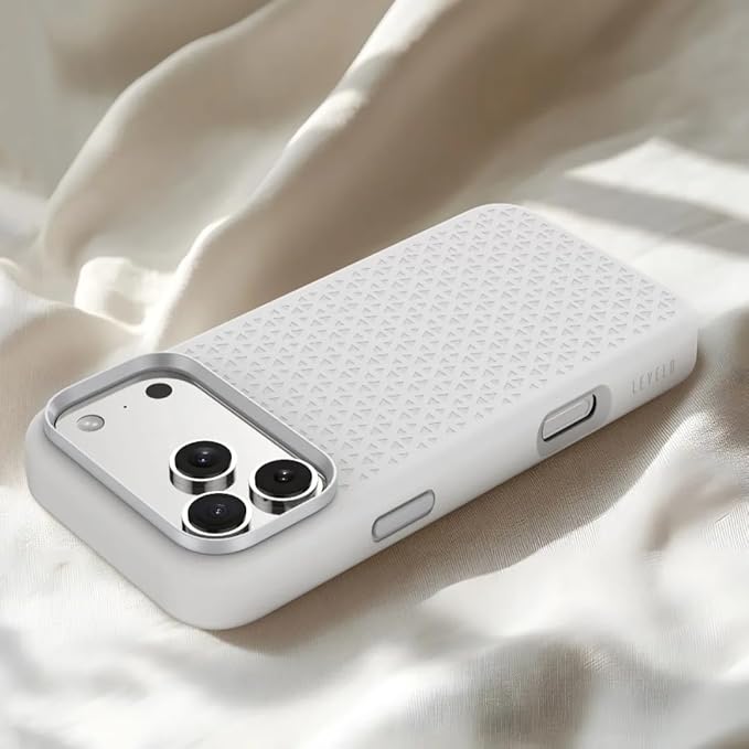 LEVELO Fiora iPhone 17 Pro Max Case, Liquid Silicone with Pattern, Compatible with MagSafe, Premium Silicone Grip, Shock-Resistant Bumper, Aluminum Alloy Frame Protection - Silver