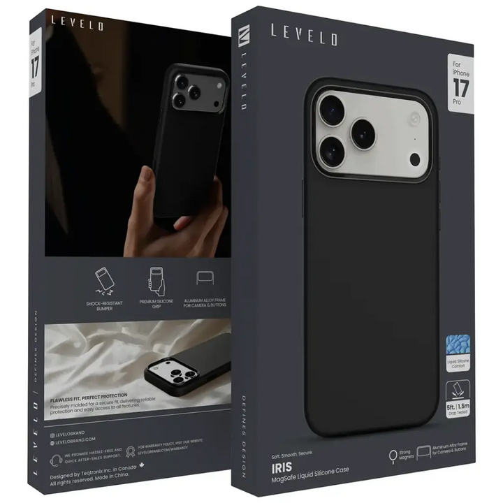 Product Description Levelo Iris MagSafe liquid silicone case for the iPhone 17 Pro/Pro Max comes with reliable protection and great looks. The magnets are strong enough to make MagSafe attachment of...