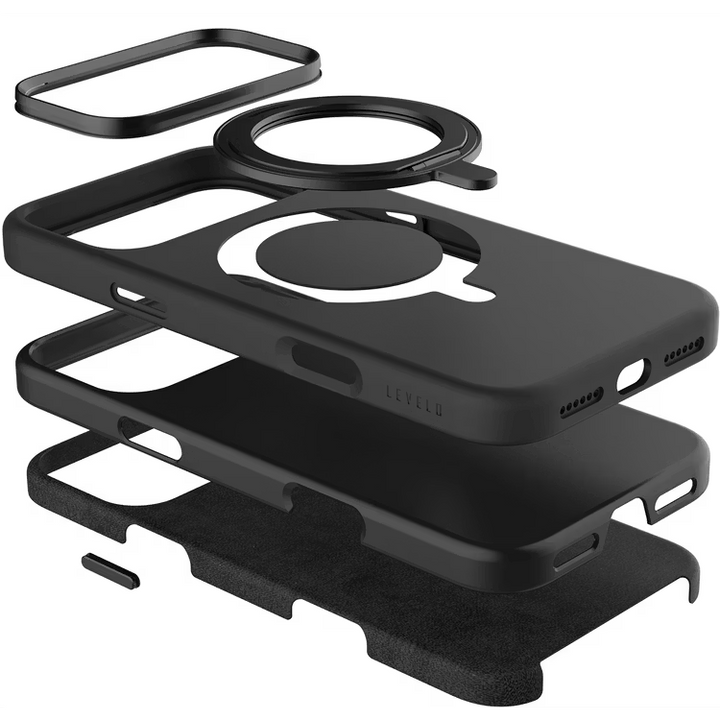 The Levelo Iris Pro MagSafe Liquid Silicone Case in chic black color for iPhone 17 Pro Max combines durability and elegance in one sleek design. This case has metal accents and an aluminum alloy frame. It protects...