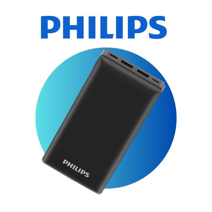 Philips 20000mAh Power Bank with 20W PD & QC3.0, USB-A & Type-C Ports (Black)