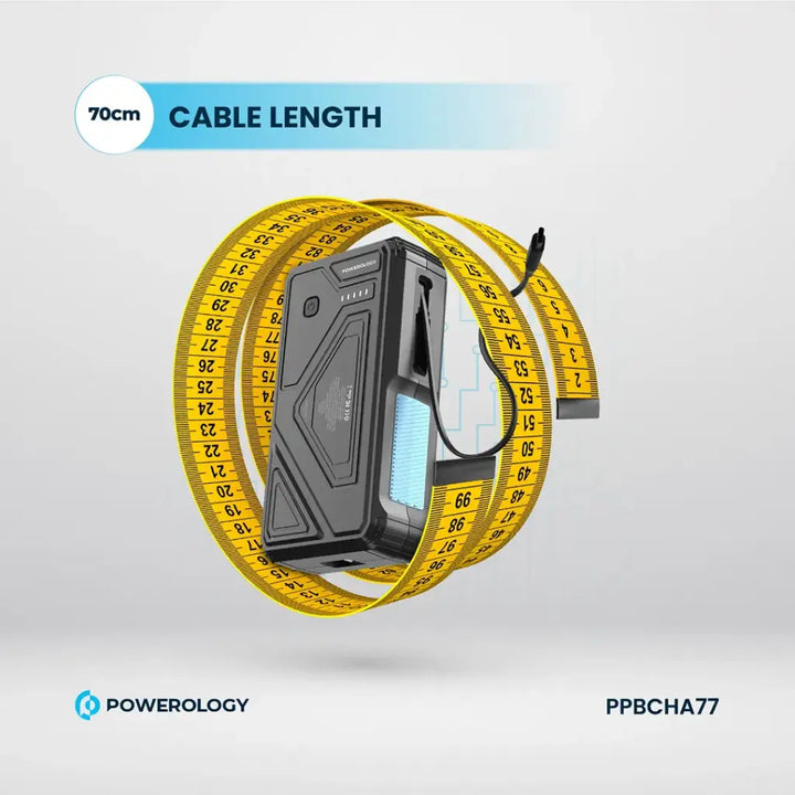 The Powerology 27000mAh Solar Wireless Charging Power Bank is a powerhouse designed for maximum reliability. With a high-density 27000mAh Li-Polymer battery, it delivers long-lasting power to all your devices. With PD 20W and USB-A 22.5W fast charging, it has the capability to charge devices from 0%-65% in 35 minutes. The power bank supports 4-device charging simultaneously, with 15W wireless output for convenient ease. The built-in solar panels (1.5W Max) provide an emergency charging option, making it suitable for use outdoors. An IP54 water-resistant structure endures several environments, while the multi-mode flashlight provides utility during darkness. The Type-C and USB-A outputs provide optimized power for phones, tablets, and other gadgets. Complete charging time is 7 hours for convenient energy refilling. Powerology 27000mAh Solar Power Bank is your ideal travel and adventure companion, offering power, durability, and convenience all in one portable unit.